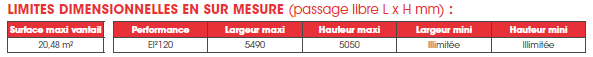 • Masse vantail = 50 kg/m²